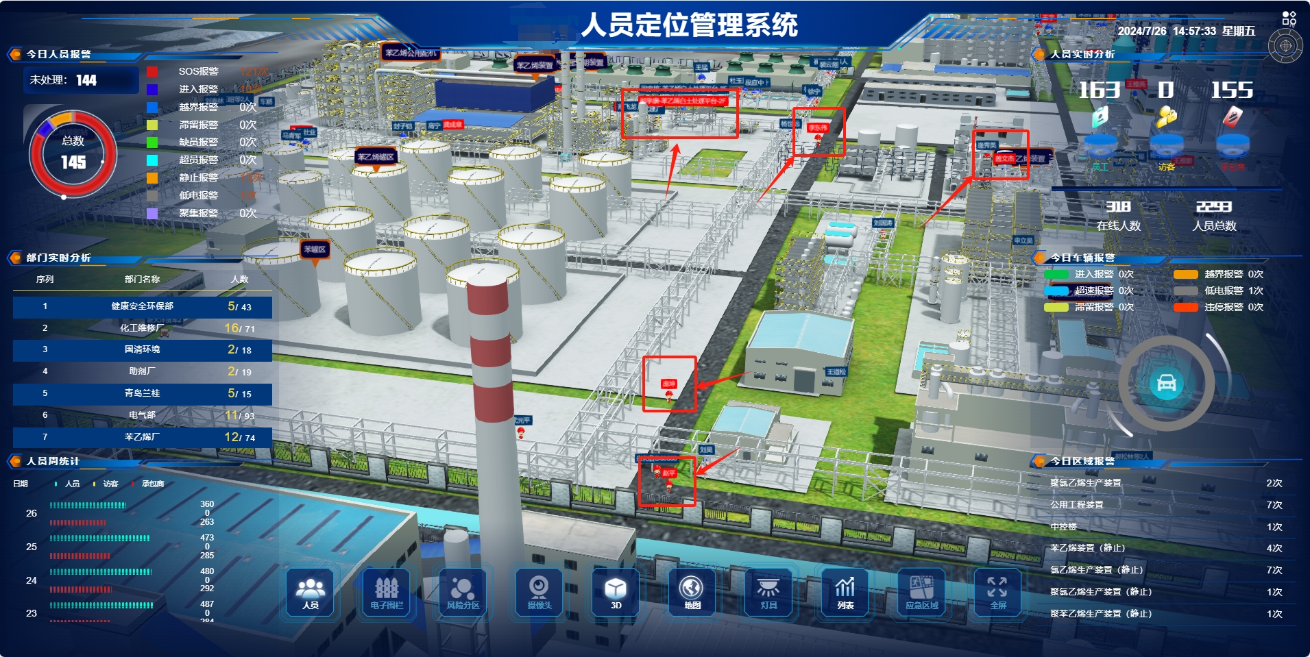 新銳科創融合定位系統以高精度定位技術為核心,實現對人員與車輛的實時精準定位。在人員定位方面,系統支持在工廠2D/3D電子地圖上按樓層、車間實時展示人員位置分布,管理人員可隨時掌握員工動態,并對人員實時軌跡進行跟蹤,無論是日常工作調度還是突發情況處置,都能快速獲取人員準確位置。針對車輛定位,系統同樣能夠精準追蹤廠區內叉車、運輸車等各類車輛的行駛軌跡與實時位置,為車輛調度、資源分配提供可靠依據。同時,定位系統采用多技術融合方案,如在室內復雜環境利用藍牙定位實現3-5米的高精度定位,在室外開闊區域借助RTK技術達到亞米級定位精度,確保全域范圍內定位的準確性與穩定性,滿足企業對人員、車輛精細化管理的需求。