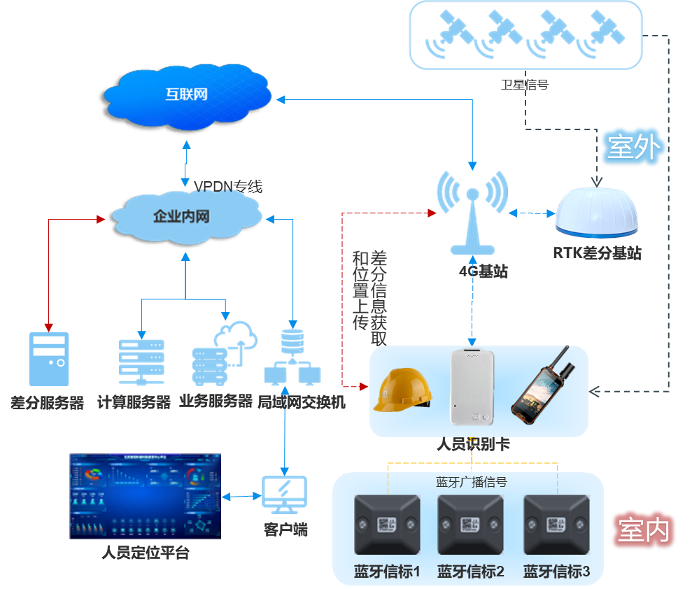 在物業室外開闊區域,如小區廣場、停車場、寫字樓外圍道路等,RTK依托北斗或GPS衛星導航系統,實現亞米級高精度定位。通過在物業區域固定位置設立RTK基準站,接收衛星信號并計算差分信息,經4G或5G網絡傳輸至差分服務器。人員和設備攜帶的定位終端獲取差分信息后,結合自身接收的衛星信號,經高精度算法處理,精準確定其在室外的位置。