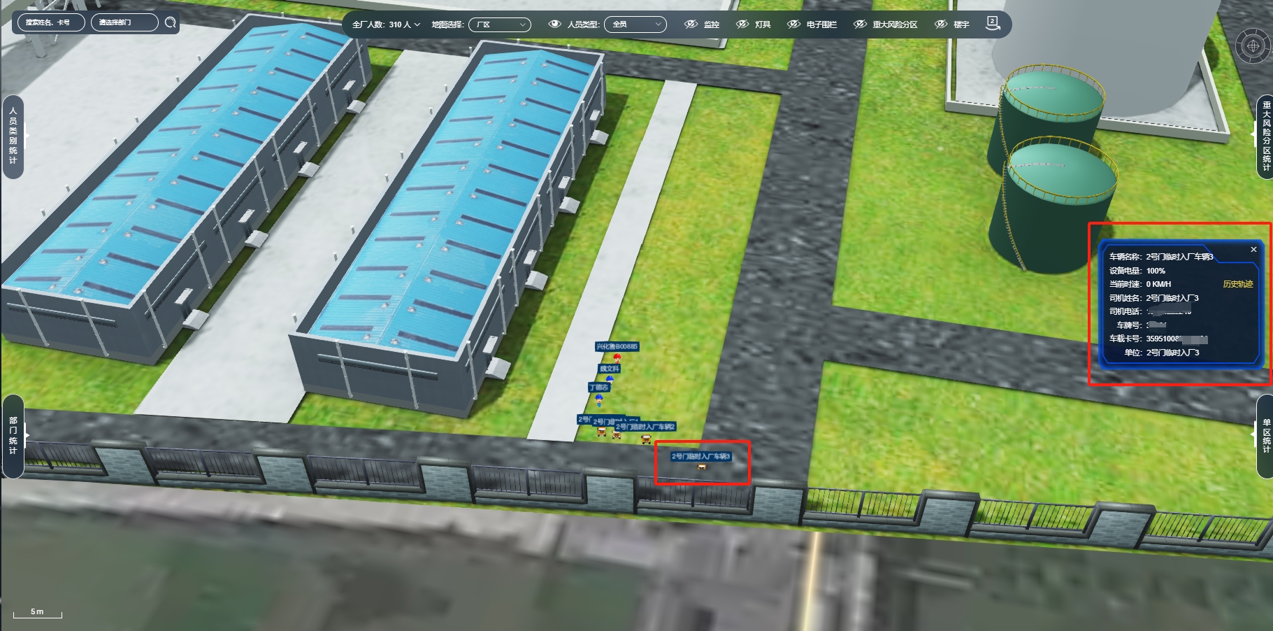 針對物料運輸環(huán)節(jié),系統(tǒng)構(gòu)建了全流程智能化監(jiān)控體系。對原料輸送、成品轉(zhuǎn)運車輛實施全域軌跡追蹤。系統(tǒng)還預(yù)設(shè)了異常監(jiān)測規(guī)則,當(dāng)車輛出現(xiàn)超速、偏離規(guī)劃路線、裝卸貨滯留超時等情況時,立即觸發(fā)預(yù)警并提示管理人員調(diào)整調(diào)度方案,優(yōu)化場內(nèi)運輸秩序,降低空駛率與等待成本。
