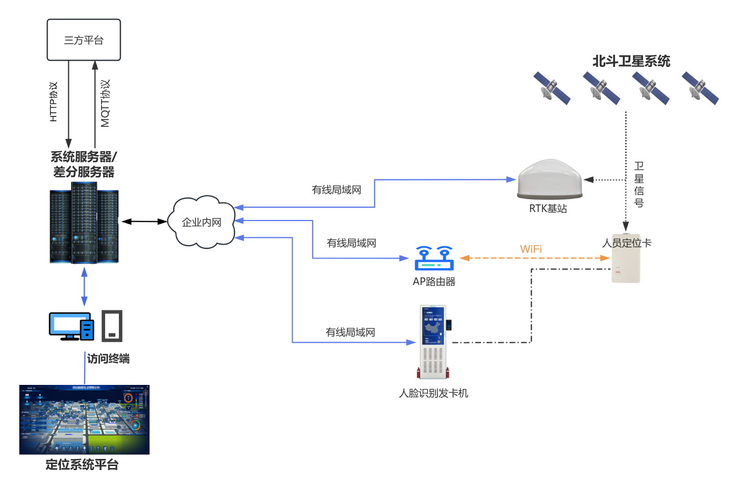 北斗RTK技術的引入,為園區室外場景提供了亞米級定位保障。在原料運輸通道、露天倉儲區、園區邊界等開闊區域,系統通過北斗衛星信號與地面基準站數據的實時差分修正,可實現極高精度的位置鎖定,精準捕捉人員移動軌跡與作業范圍。這種高精度能力不僅滿足了室外人員監管需求,更可與?;愤\輸車輛定位形成聯動,構建起人員、車輛協同管控網絡。而當人員進入廠房、管廊等室內區域,衛星信號受遮擋時,系統可自動切換至WiFi定位模式,通過接收信號強度指示(RSSI)與多AP協同測距,確保定位精度滿足室內作業監管要求。智能切換算法的應用,實現了兩種定位模式的無縫銜接,人員在室內外移動過程中無需人工干預,定位連續性與穩定性得到充分保障。
