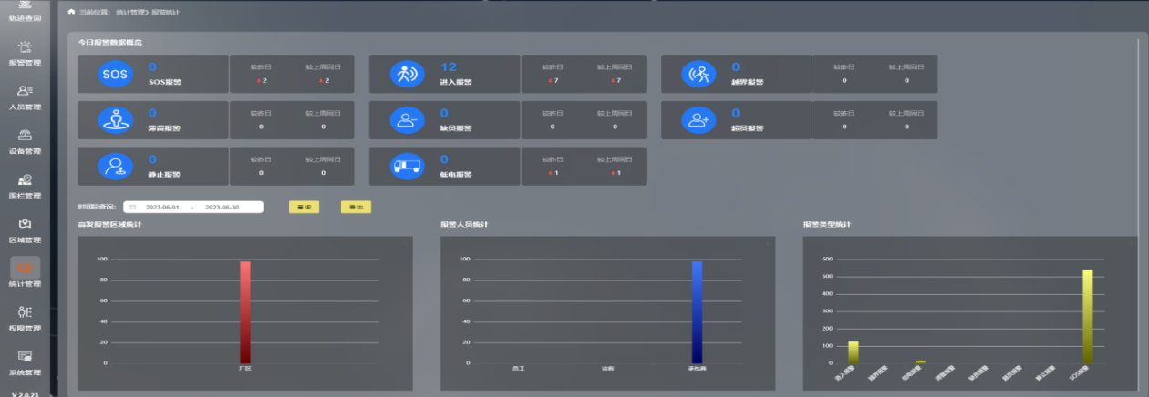 支持各類數(shù)據(jù)實(shí)時(shí)統(tǒng)計(jì)分析,提供全面的數(shù)據(jù)報(bào)表和可視化工具,以表格、熱力圖等形式展示各區(qū)域人員分布及報(bào)警信息等關(guān)鍵數(shù)據(jù)。