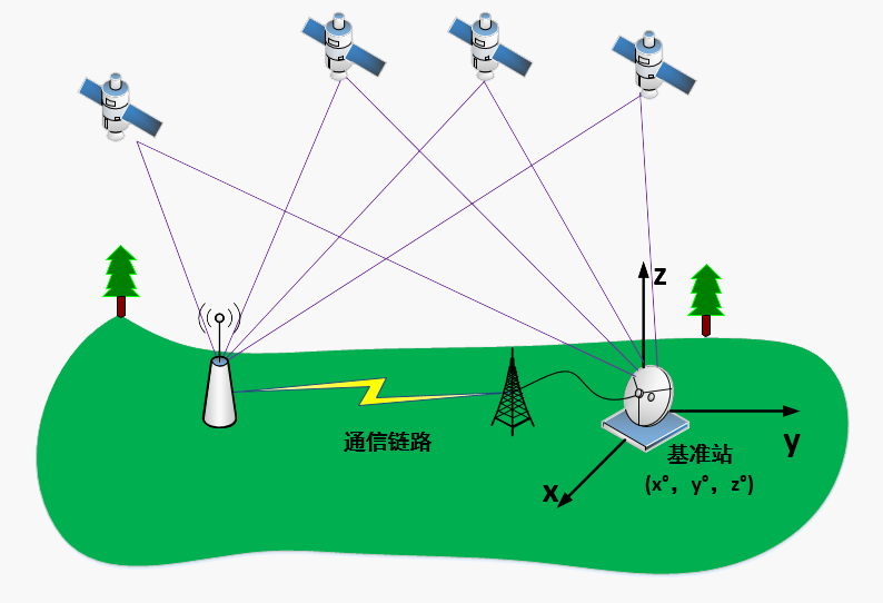 新銳科創(chuàng)利用RTK定位技術(shù)進(jìn)一步提升衛(wèi)星定位的精度,在衛(wèi)星定位的基礎(chǔ)上,在地面固定的位置架設(shè)一個已知坐標(biāo)的差分基準(zhǔn)站,差分基準(zhǔn)站觀測和接收衛(wèi)星數(shù)據(jù),并根據(jù)觀測值和已知坐標(biāo)信息求出修正值,并將修正值實時發(fā)送給流動站(定位終端),流動站接收差分基準(zhǔn)站數(shù)據(jù)的同時,也觀測和接收衛(wèi)星數(shù)據(jù),流動站利用差分基準(zhǔn)站修正數(shù)據(jù)和自身觀測數(shù)據(jù)修正定位數(shù)據(jù),從而實現(xiàn)精確定位。
